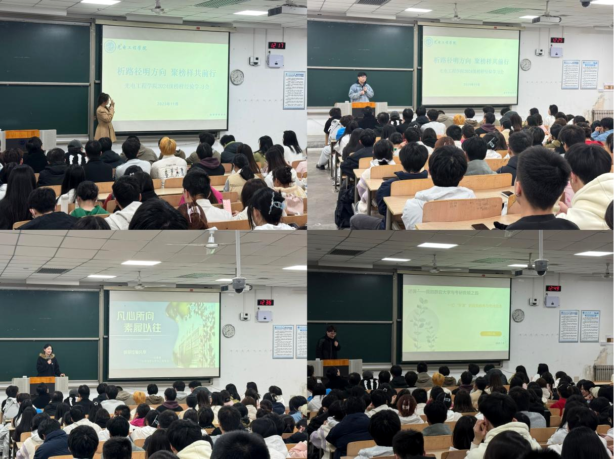此次榜样经验学习会为2024级学生搭建了互学互鉴的交流平台,不仅明晰了就业、保研、考研三条核心发展路径,更传递了坚韧不拔、勇于追梦的青春正能量。希望光电学子将感悟转化为行动,在勤学善思中夯实专业基础,在笃行实干中锤炼过硬本领。