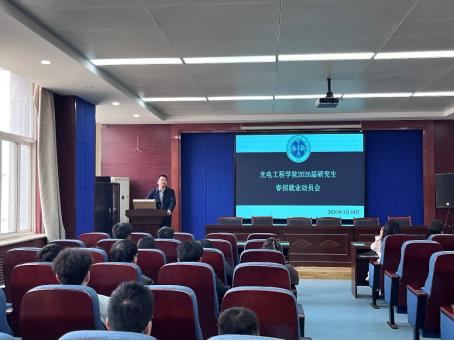为全面推进2026届毕业生高质量就业,加强安全稳定教育管理,3月10日,光电工程学院在工6-402召开研究生春招动员会暨年级大会。此次会议由学院辅导员李璇主持,院长朱学亮、党委副书记杨利红出席,2023级、2024级研究生参会。