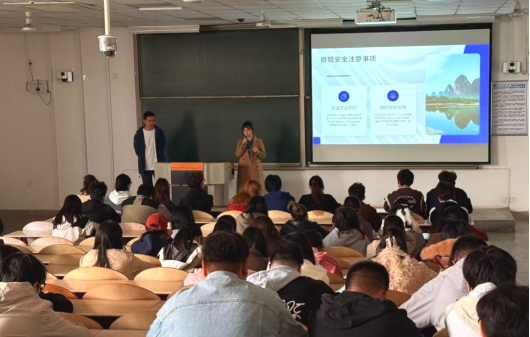 会议伊始,蒋紫洮结合假期特点和毕业班学生实际,重点强调出行安全、消防安全、祭扫安全和财物安全,同时要求学生严格执行请销假制度,假期结束按时返校。随后,针对毕业季安全重点,郭帅结合近期高校毕业生典型安全案例展开讲述,重点剖析求职诈骗和个人信息泄露两类高发风险,分享了毕业生因轻信“高薪无门槛”招聘、泄露个人信息而陷入诈骗陷阱、遭受财产损失的真实案例,叮嘱学生警惕虚假招聘、不泄露敏感信息,下载国家反诈中心APP做好防护,同时提醒学生规范处理毕业物品,注意宿舍用电安全,杜绝违规电器使用。