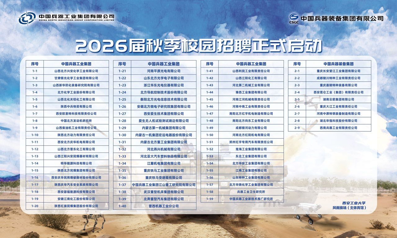 中国兵器工业集团秋季校园招聘
