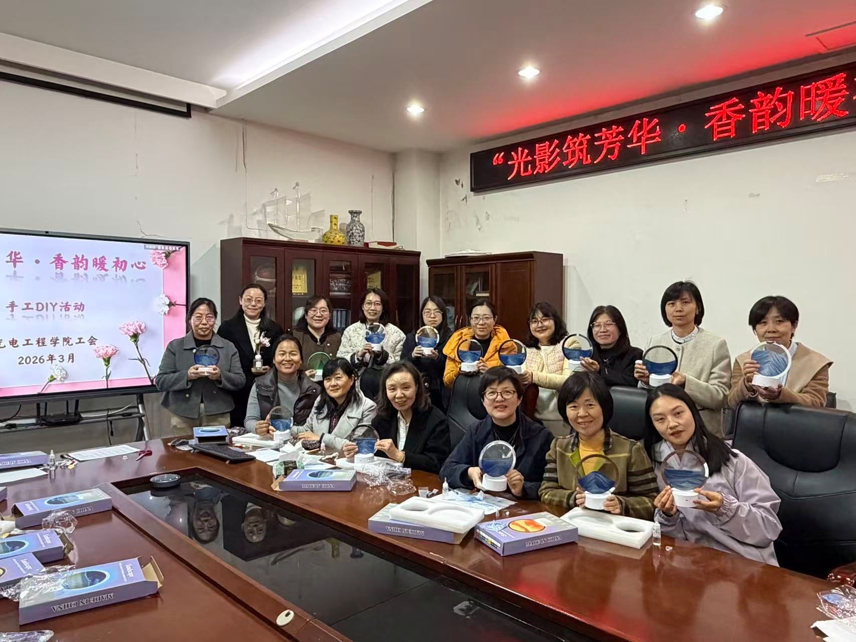 三月春风润人心,巾帼绽彩谱新篇。为热烈庆祝第116个“三八”国际妇女节,致敬学院全体女教职工在教育教学、科研攻坚、管理服务岗位上的辛勤付出与无私奉献,丰富女教工精神文化生活,3月20日,光电工程学院工会在工6-416会议室顺利举办“光影筑芳华・香韵暖初心”主题手工DIY活动,为全体女教工送上温馨的节日祝福与暖心关怀,让大家在沉浸式手作中舒缓压力、进一步增强归属感与幸福感,凝聚巾帼力量,助力学院高质量发展。