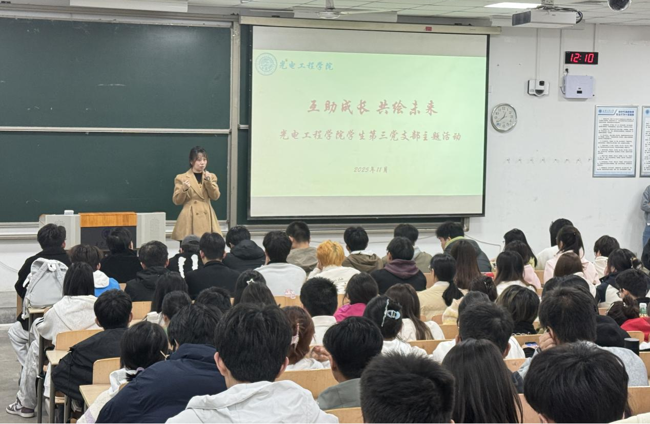聚焦2024级学业适应与发展规划需求,为新生成长成才注入新动力,11月20日,光电工程学院学生第三党支部在教2-102开展“互助成长 共绘未来”主题活动。党支部书记蒋紫洮主持活动,支部全体党员及2024级全体学生参加。