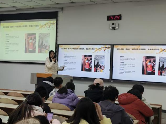 在第40个国际志愿者日到来之际,为弘扬志愿精神,探讨志愿服务创新路径与志愿者自我成长之道,光电青协在教2-104举办了一场精彩纷呈的优秀志愿者经验分享会。本次会议由青协宣传部部长何玉帆主持,学院团委副书记陈慧英出席活动并致辞,来自光电工程学院、新生院的100余位同学参加了本次活动。